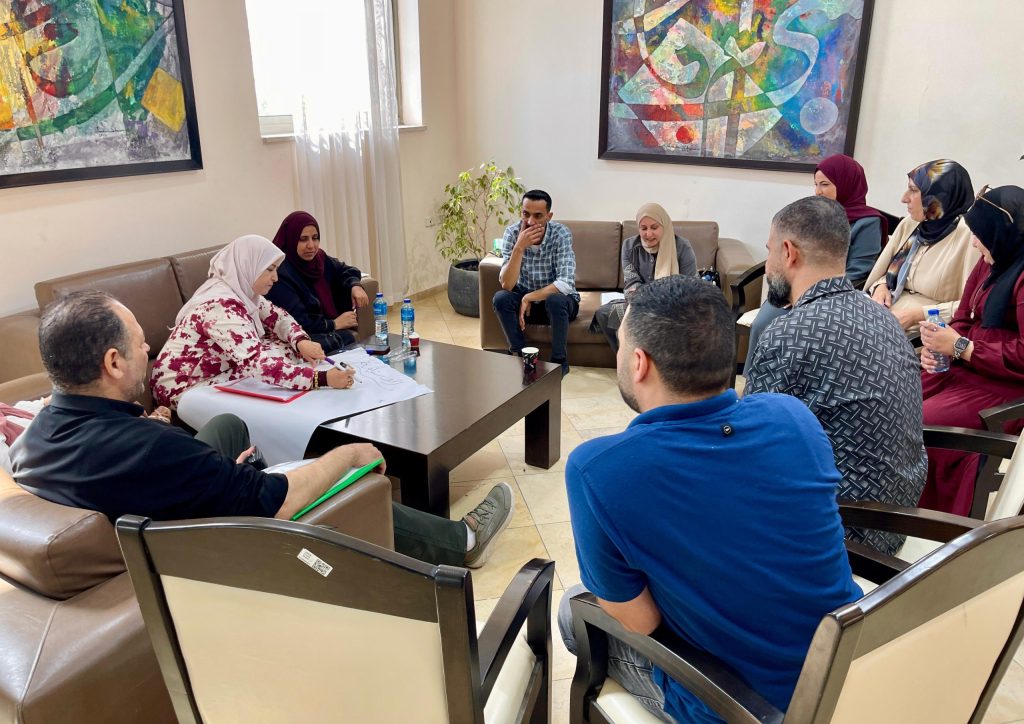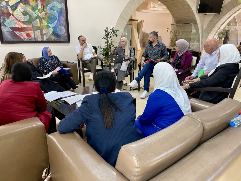 The Executive Director of UEF, Dr. Asaad Al-Ramlawi; representatives from MoE (the Deputy Assistant for Student Affairs, Dr. Sadeq Al-Khaddour; the Director General of Directorate, Mr. Mohammad Al-Hawash; and the Director General of Holistic Health, Dr. Ahmad Si‘arah were participated in the workshop, in addition to, they were joined by heads of educational counseling departments, school principals, and school counselors from the targeted schools.